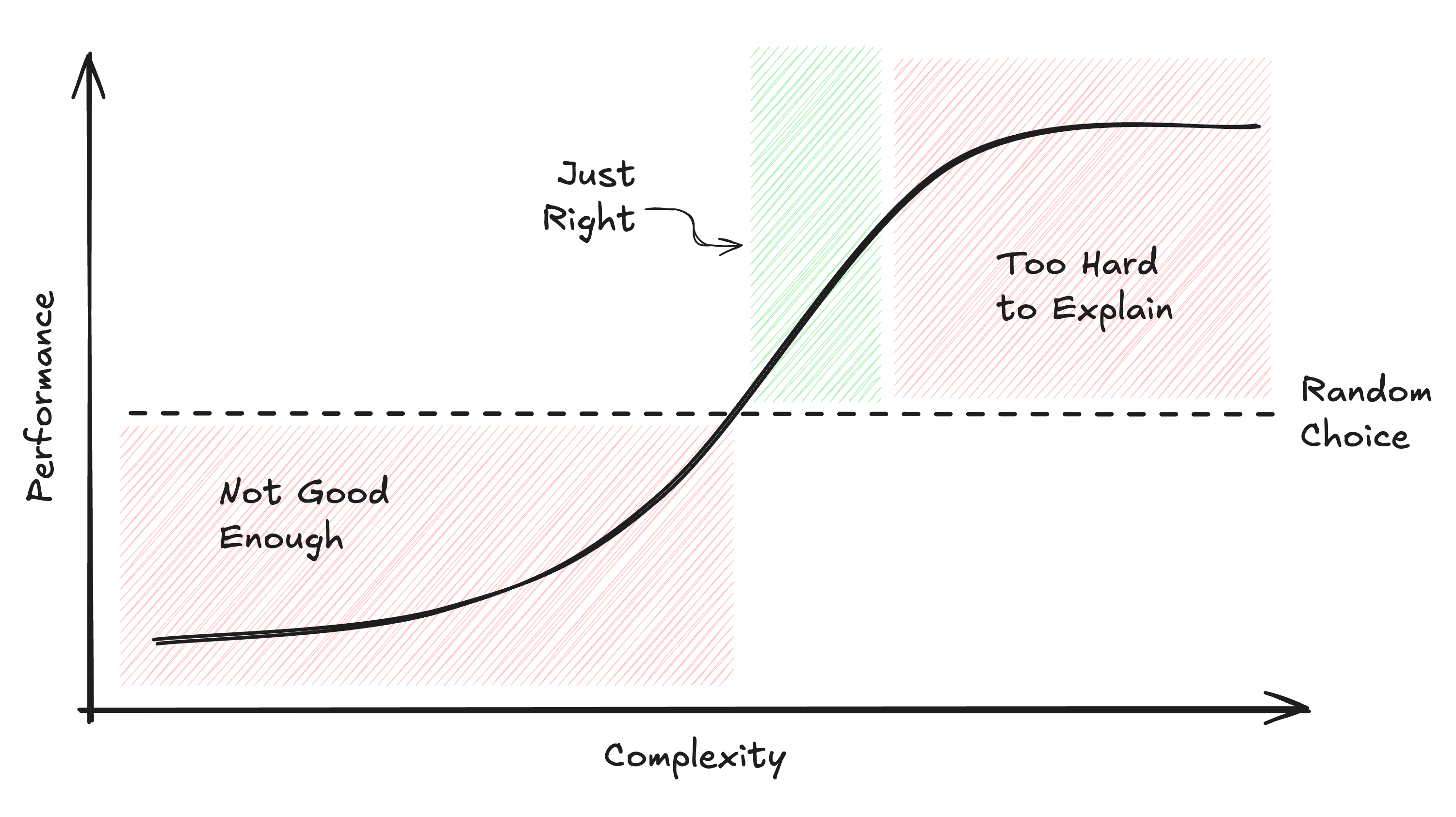 At the other end of the spectrum are ML models. They attempt to “learn” complex interactions across many data points to produce the best possible prediction. As a side effect, it’s hard to understand exactly why a model makes any given prediction. There are tools for this but they’re not very helpful to normal people.